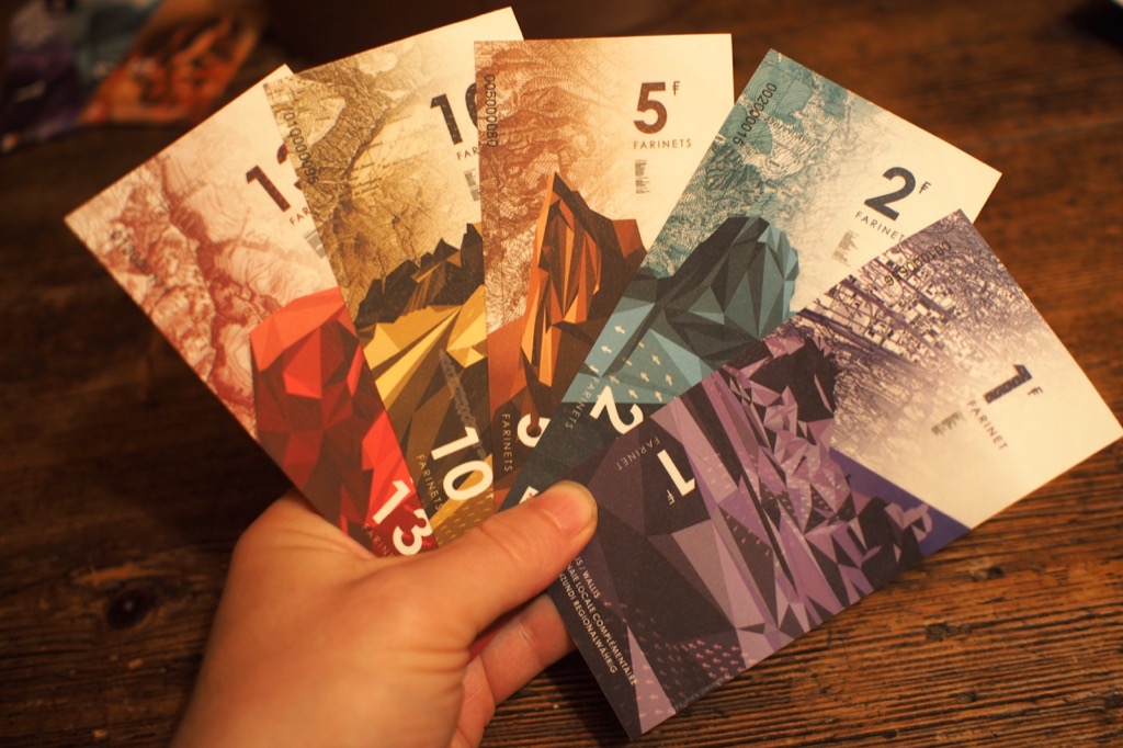- Monnaie locale complémentaire → Souvent abrégée MLC. Une MLC est généralement une « monnaie » qui est créée localement par des citoyens qui veulent dynamiser l’économie locale et/ou favoriser les commerces qui correspondent à une charte éthique. La plupart des monnaies locales complémentaires sont nanties et très souvent à parité avec la monnaie ayant cours légal. En Suisse romande, il y a par exemple le Léman et le Farinet. Techniquement, une MLC est considérée comme un bon d’achat. Même si les MLC circulent souvent sous forme de billets, ce ne sont pas des billets de banque. Car selon l’art 99 al. 1 de la constitution Suisse : La monnaie relève de la compétence de la Confédération; le droit de battre monnaie et celui d’émettre des billets de banque appartiennent exclusivement à la Confédération. Seule la BNS est en droit d’émettre des billets de banque.
